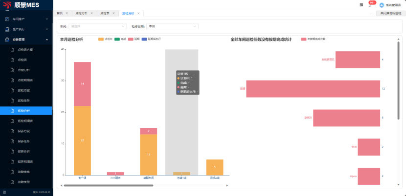 建立自動化點檢系統,每日定時生成巡檢任務,通過物聯網實時監測設備運行狀態,應用終端設備進行機臺巡檢,通過可視化報表查看設備的運行狀態/點檢狀態;